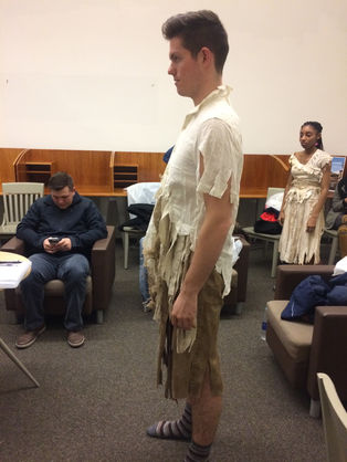 I decided to showcase the creature solely on the face, closest to the mind, the mentality, via a complex mask design that was fabricated with hand dyed feathers (which was inspired by our selected environment, the beach). It's only in the mind where they don't fit in, which lead to the decision of the costuming colors, textures, and fibers mirroring the sandy terrain, distressed over the anxiety of the mind.